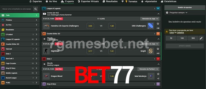 A aposta Bet77 oferece aos jogadores a experiência mais conveniente de apostas em eSports!